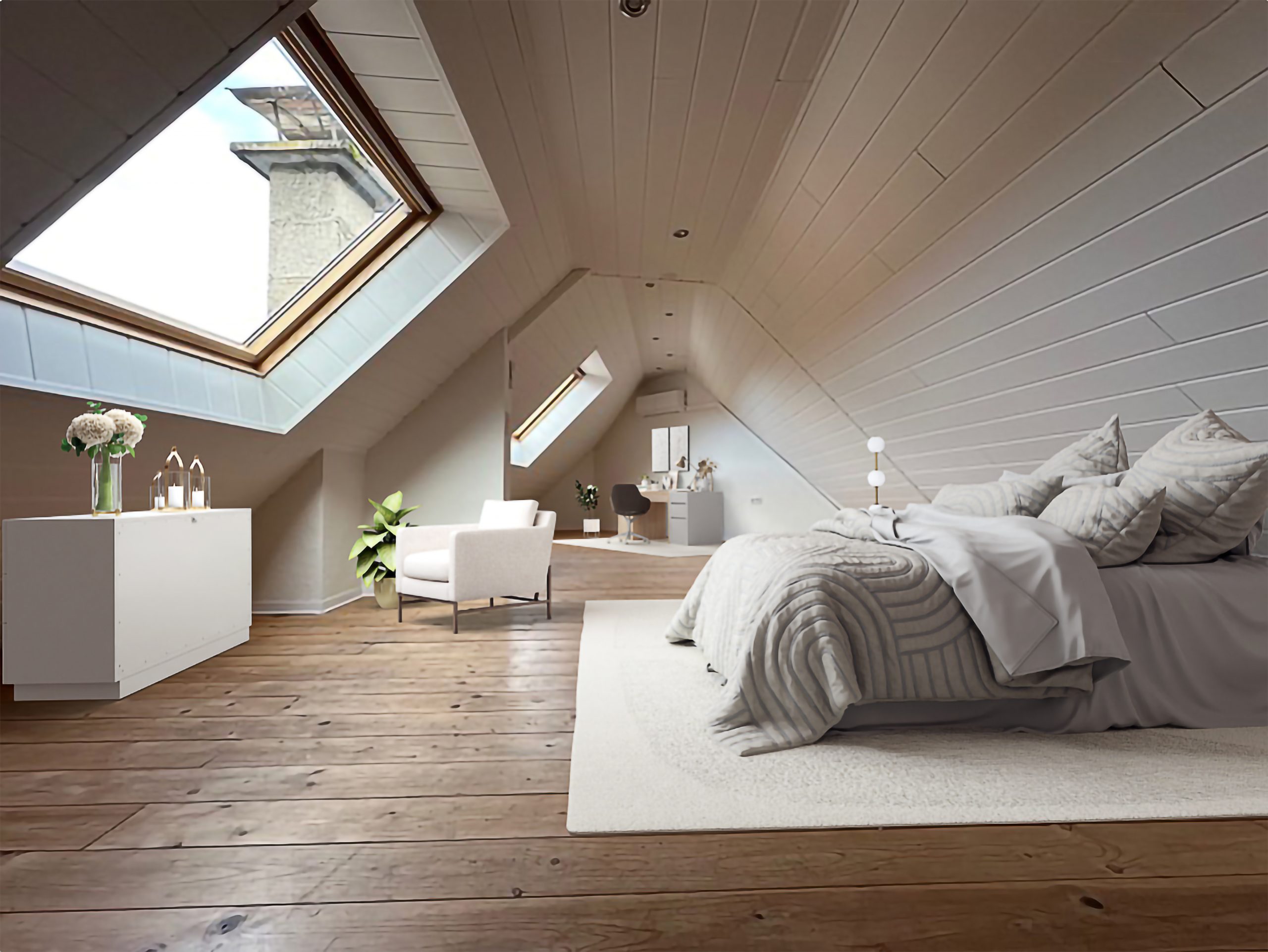 Der attraktive Grundriss der Einheit unterteilt sich in ein geräumiges Wohnzimmer, ein großzügiges Schlafzimmer, ein modernes Badezimmer mit Eckbadewanne sowie ein einladendes Galeriezimmer. Ob als Arbeitsbereich, Leseecke oder kreativer Rückzugsort – hier haben Sie Raum für individuelle Gestaltung.