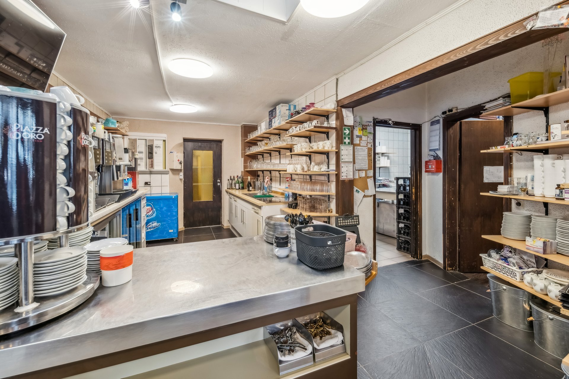 Im Untergeschoss befindet sich eine hauseigene, voll ausgestattete Backstube, die ideale Voraussetzungen für den Betrieb eines Café- oder Konditoreigeschäfts bietet. Das gesamte Inventar kann übernommen werden, sodass ein nahtloser Weiterbetrieb ohne große Erstinvestition möglich ist.
